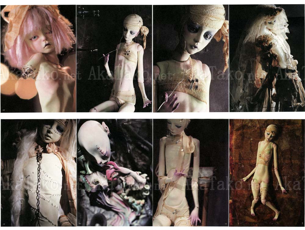 Postcard set of dolls created by Etsuko Miura "Specimen Room of Gishin". Boxed set contains 25 postcards plus two additional cards - the front title card and a gallery exhibition card (pictured in last photo - two smaller images).