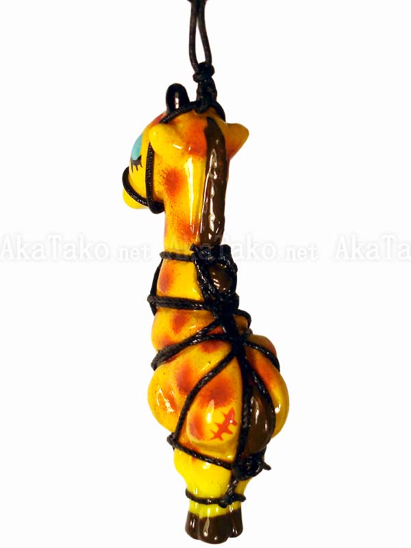 The tall giraffe is no match for Japanese rope bondage in a geometric karada pattern. He'll have to wait to roam the plains until someone lets him loose. Kinbaku cell phone strap handmade in Japan and signed by the artist (in brown on back). Comes on a paper display card as shown in second photo.