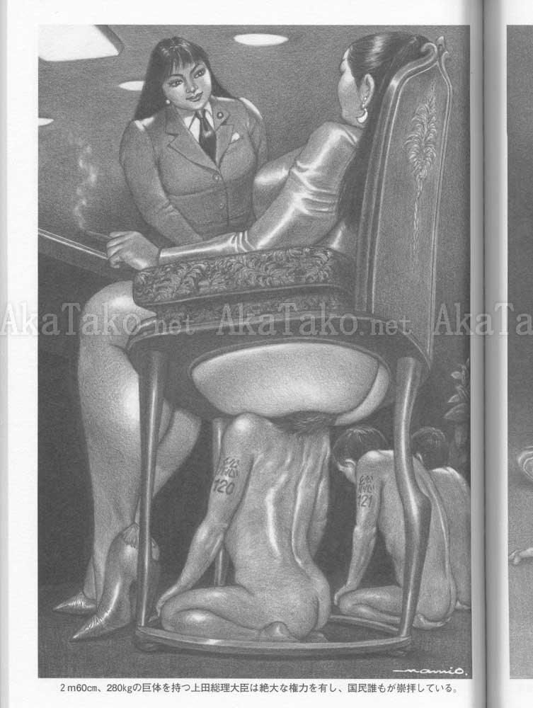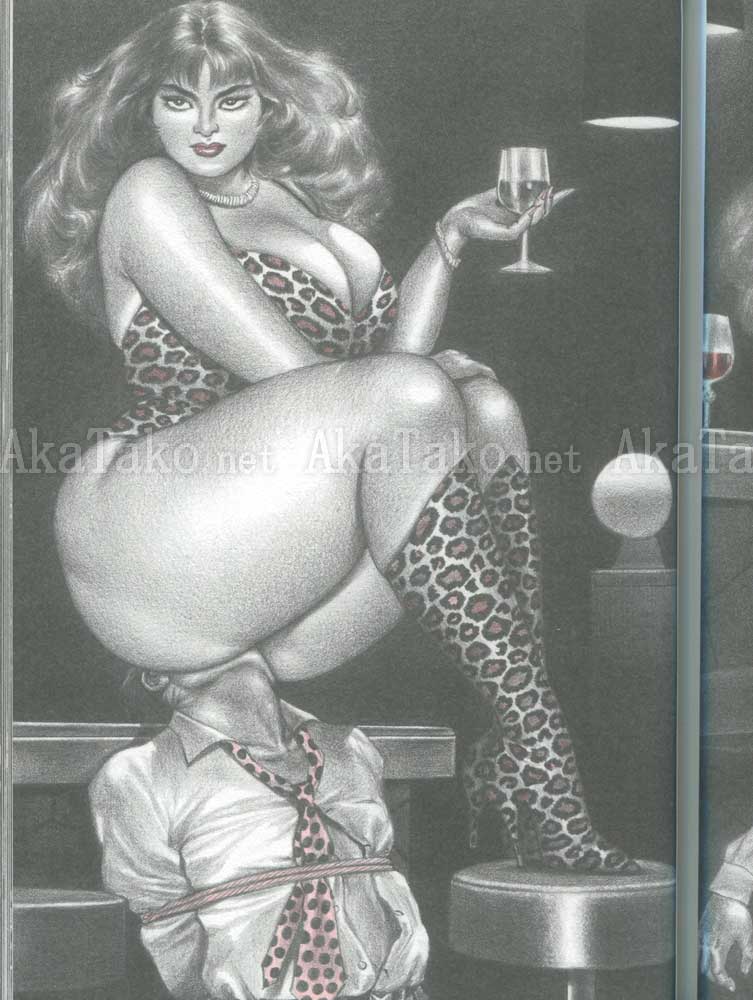 Large format book features full page, color, and black & white femdom drawings by Namio Harukawa. Over 80 of them provide a story for each image (in Japanese only). The rest of the book is split into 20 sections with titles like: Sexy Dream, Can't Fight Off Tiger Lady, Office Love So Wild and Intense, Would You Like to Be Inside Me, Office Animal Attached to Boss Woman, etc. (titles are listed in Japanese & English). SIGNED inside the front cover.