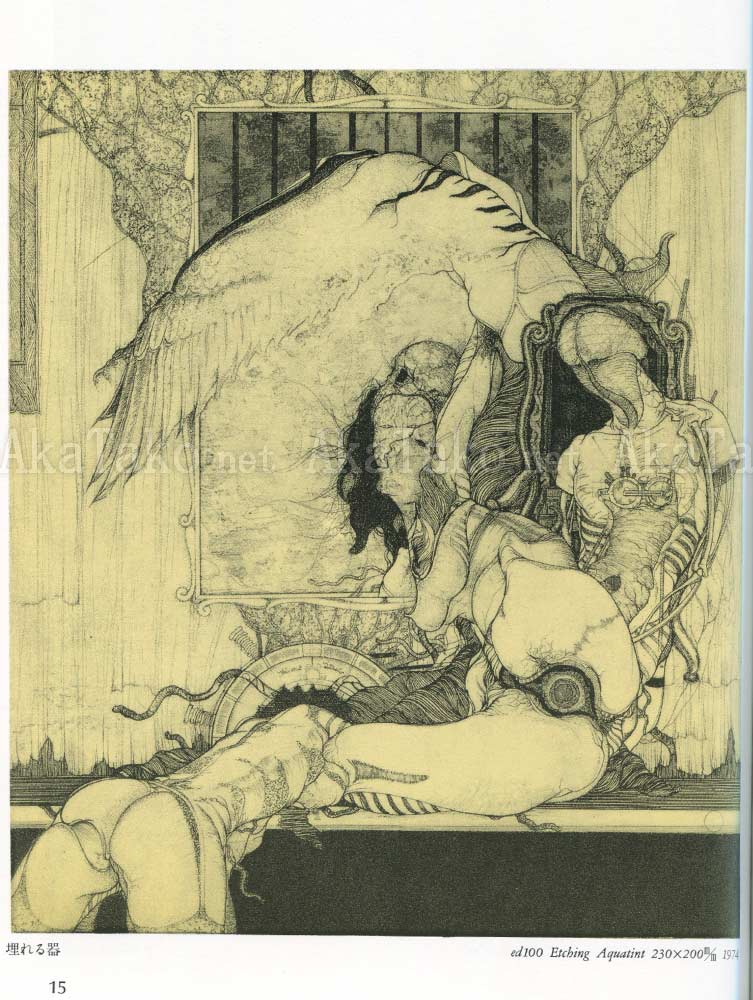 Self-taught Japanese artist Shin Taga is renowned for his detailed and surreal etchings. SIGNED inside the front cover in pencil. Book reproduces over thirty of his artworks (mostly full page images) and includes Japanese text titles and descriptions of each work.