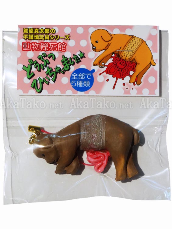New series of five "Road Kill Animal" cell phone charms by Shintaro Kago. The sweet brown dog has been run over and now lies dead in the road. Paint colors may vary a little because they are all individually created. If you need to see an exact photo please request one before buying.