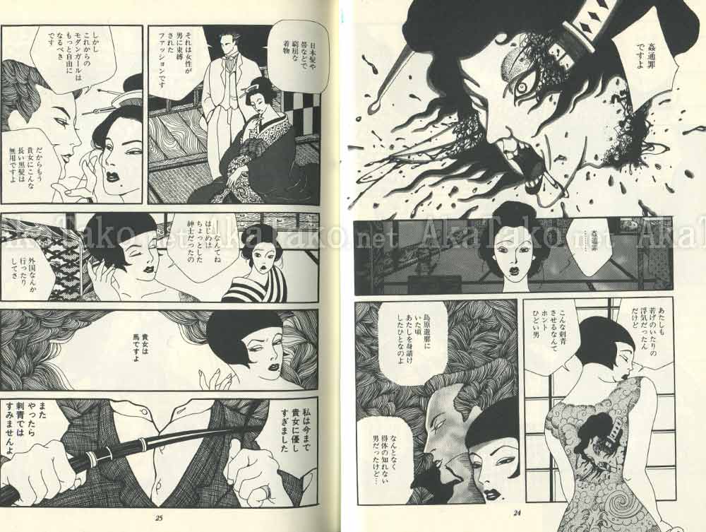 Manga by: Suehiro Maruo, Aki Narita, Mitsuhiko Yoshida, Tamaki Matsui, Kotaro Okoshi, Hiroji Tani, Katsuo Kawai, Toshio Hagiwara, Angelica, Keizo Miyanishi, and Jun Hayami. Artwork by: Aki Narita and Kazuichi Hanawa. Articles by: Kagero Matsuki, Atsushi Hachisu, Junko Nimura, Shunichi Karasawa, and Suzuki Ryoji.