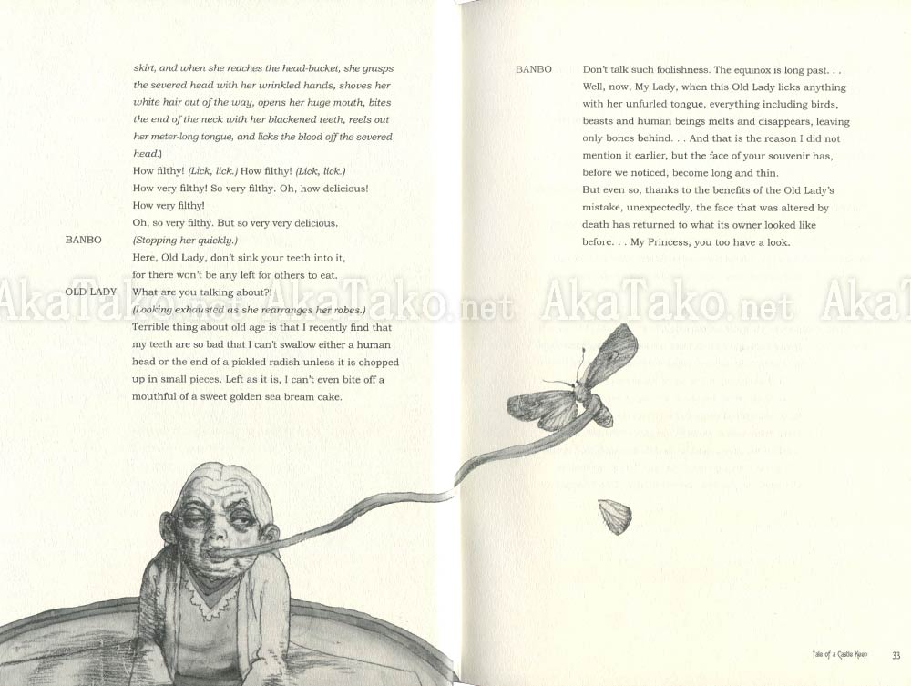 Special, limited edition of the 100th anniversary of Kyoka Izumi's famous play "Tale of a Castle Keep" (Tenshu Monogatari) is styled after the highly collectable "Kyoka-bon" books of first edition Kyoka Izumi novels. Limited to 600 pieces, special edition includes luxury binding, vermillion page edges, and three ribbon bookmarks attached at the binding.