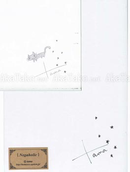 SIGNED with stars and a little kitty cat on the reverse (inset). Includes a heavy card backing that is SIGNED in black marker with more stars and a title plate. Measures approximately 8.25" x 11.75" (21cm x 29.7cm). Midweight, glossy finish paper. First printed in "Ame Iro Romance" book.
