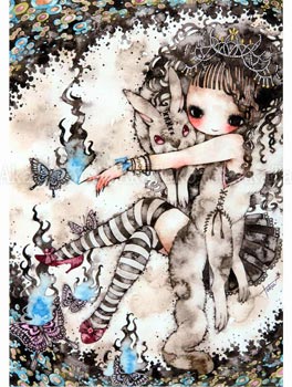 This is an unsigned print. Measures approximately 8.25" x 11.75" (21cm x 29.7cm). Midweight, glossy finish paper. First printed in "Under the Rose" book.