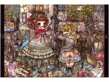 Set of four postcards with the cute and dark artwork of Tama. Features four images: For the Last, Monotonous Work, Mama Doesn't Know, and To Be Not Lonely.