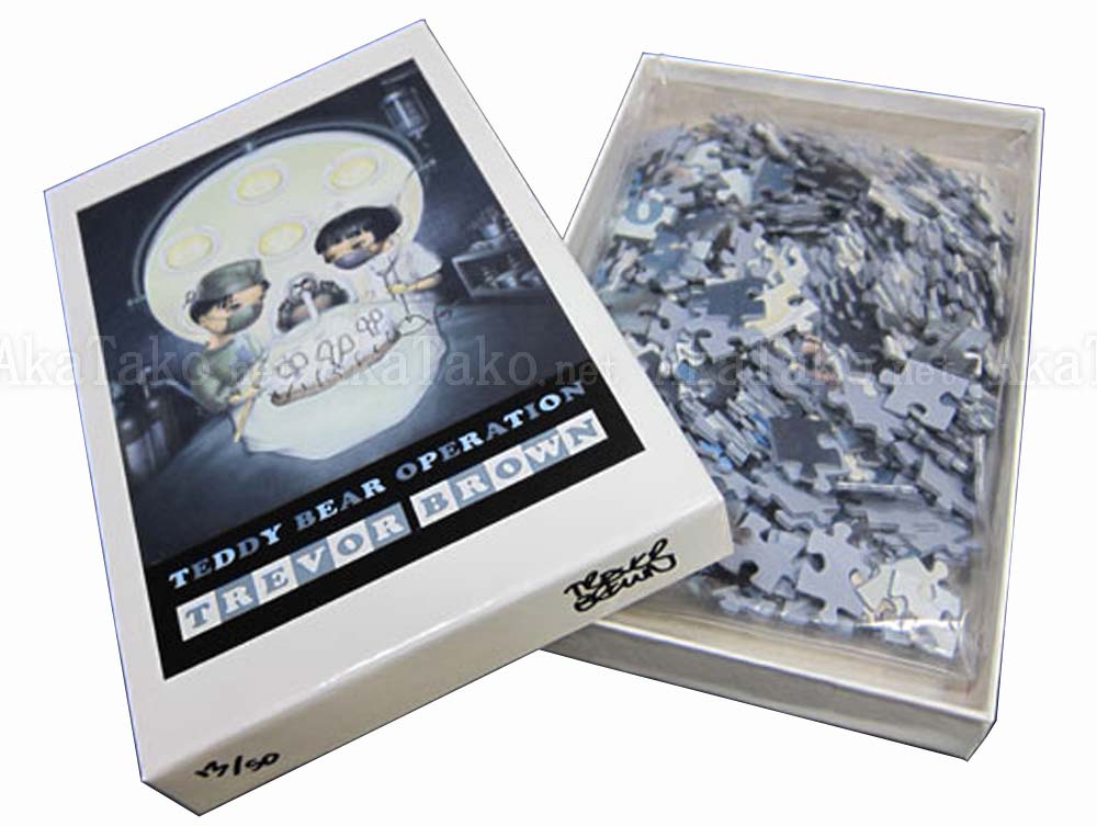 Trevor Brown's first puzzle "Teddy Bear Operation" - now published in the new edition of Medical Fun - is hours of fun for the whole family. Underneath a bright and sinister operating room lamp a lovely nurse and serious surgeon search for what ails the teddy. Limited edition of only 50 pieces.